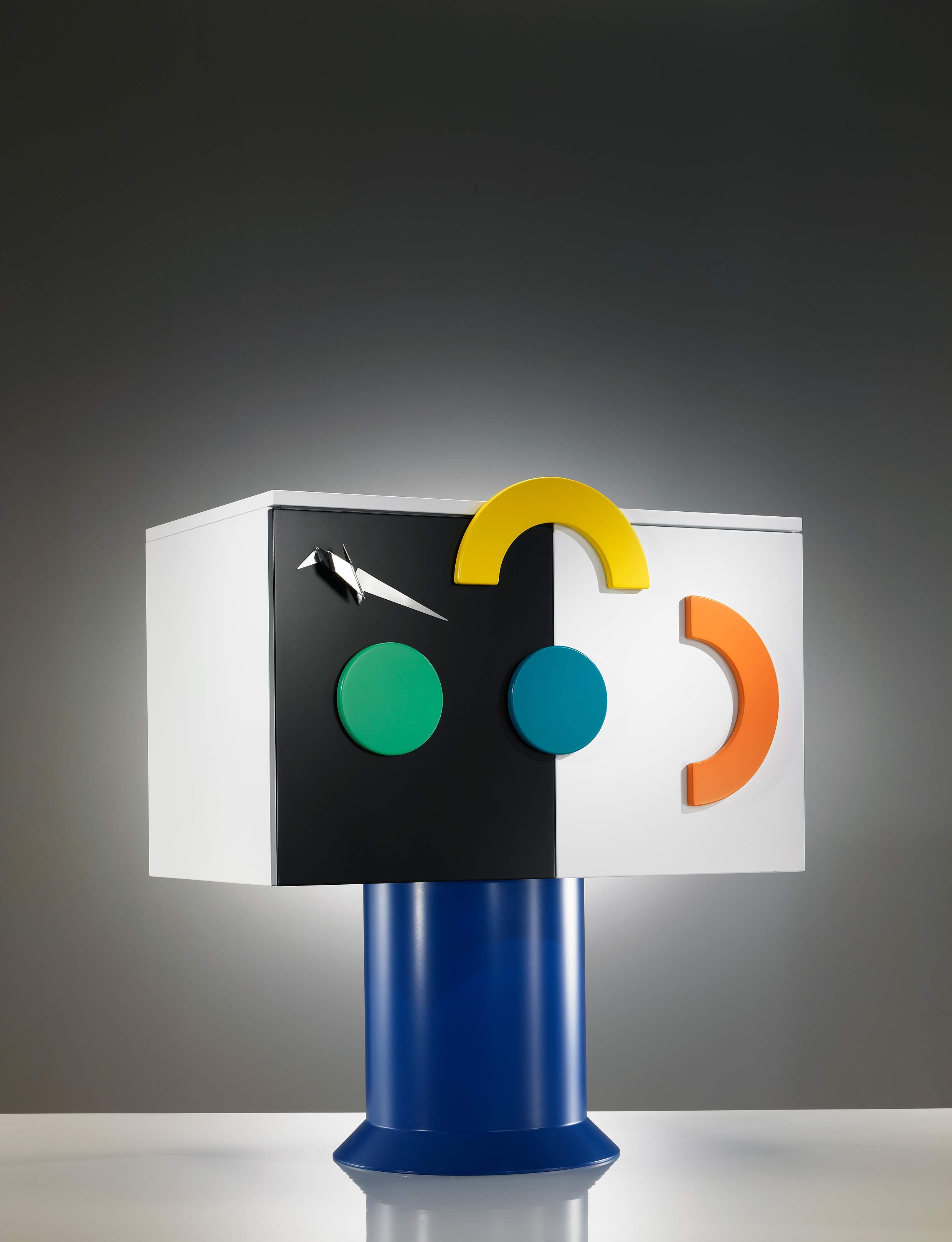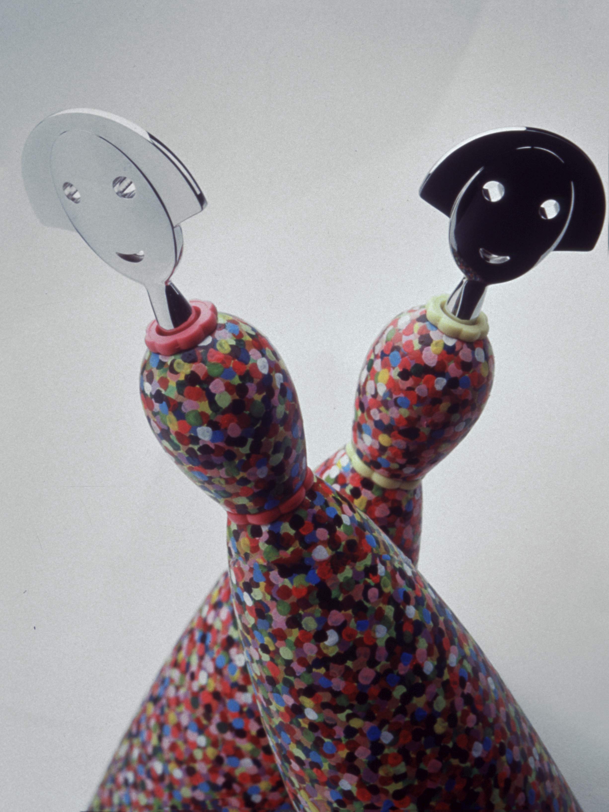 The exhibition explores other aspects of the close relationship between Mendini’s work and that of the historical avant-gardes. Highlights of the show include a Kandissi sofa, inspired by Kandinsky’s abstract compositions, whilst a later group of sculptures and vases reference the mannequin-like figures that appear in Malevich’s works of the 1930s. Also featured is the celebrated Proust Armchair of 1978: a neo- Baroque item of furniture transformed with Pointillist colour. Such pieces epitomise Mendini’s simultaneously respectful and irreverent engagement with art history – a consistent feature of his work being its gleeful subversion of the Modernist dictum ‘form follows function’.